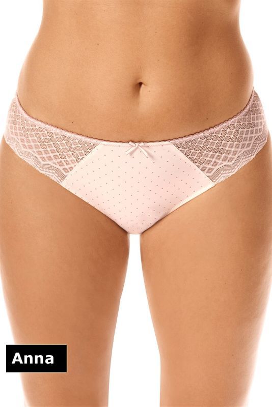 A smooth microfiber brief with decorative lace and a subtle polka‑dot pattern. Opaque coverage and flat edges make it ideal under clothing.