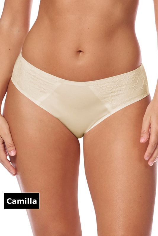 Seam‑free bonded construction, All‑over lace with microfiber backing, Soft cotton crotch lining, Moderate cut for everyday wear